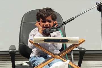 مراسم با تلاوت آیاتی از کلام الله مجید توسط قاری خردسال، علی گلستانی، آغاز شد و حال و هوایی روحانی به محفل بخشید.